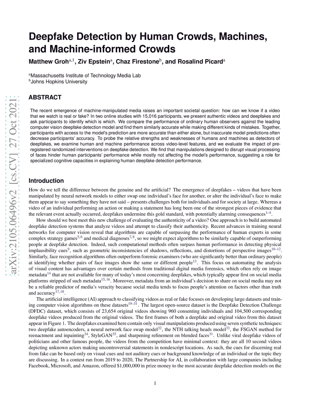 Deepfake Detection by Human Crowds, Machines, and Machine-informed