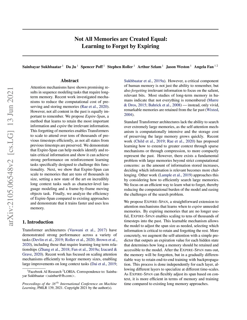 Not All Memories are Created Equal: Learning to Forget by Expiring