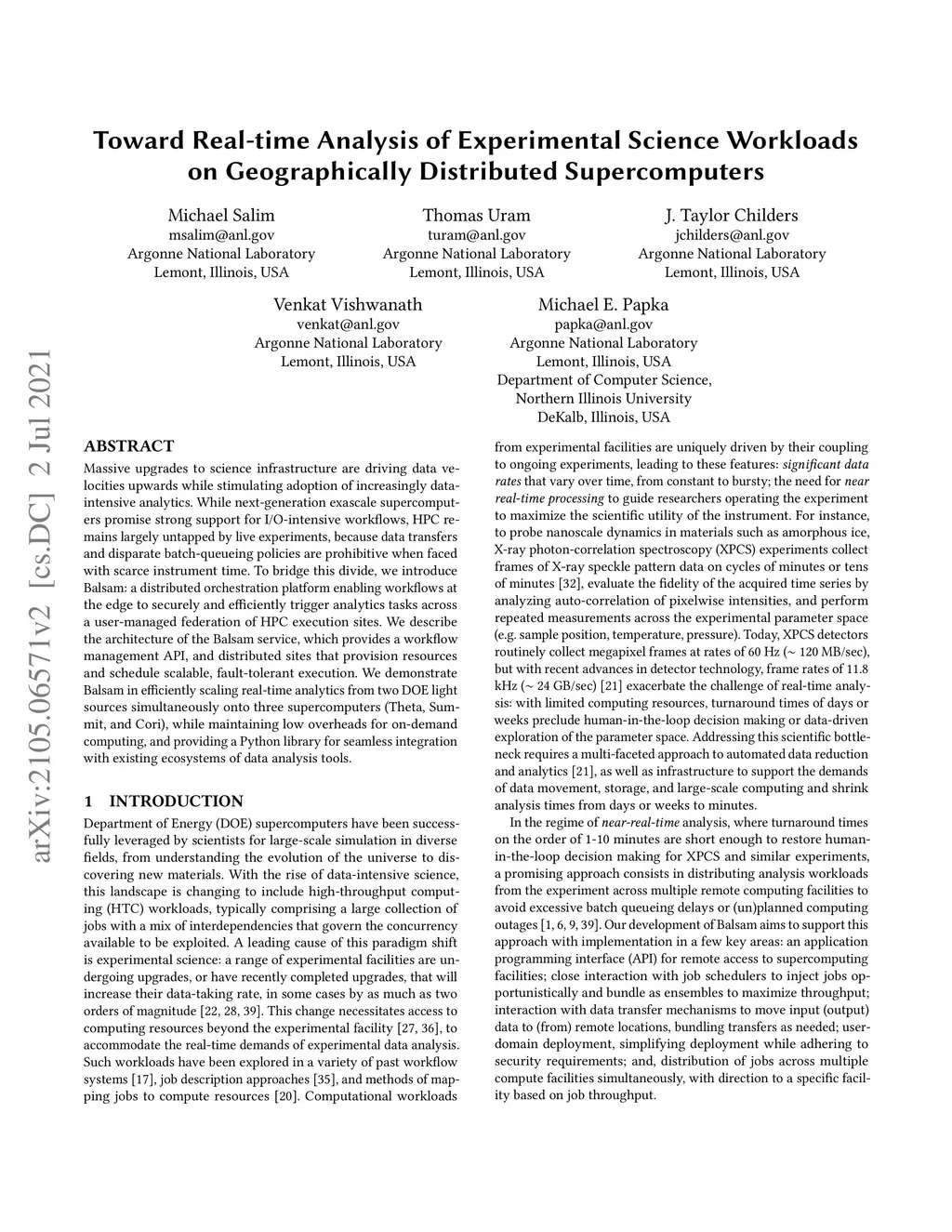 Toward Real-time Analysis of Experimental Science Workloads on