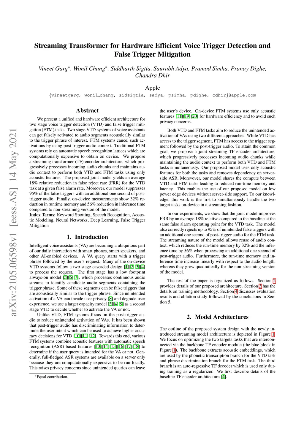 Streaming Transformer for Hardware Efficient Voice Trigger Detection and