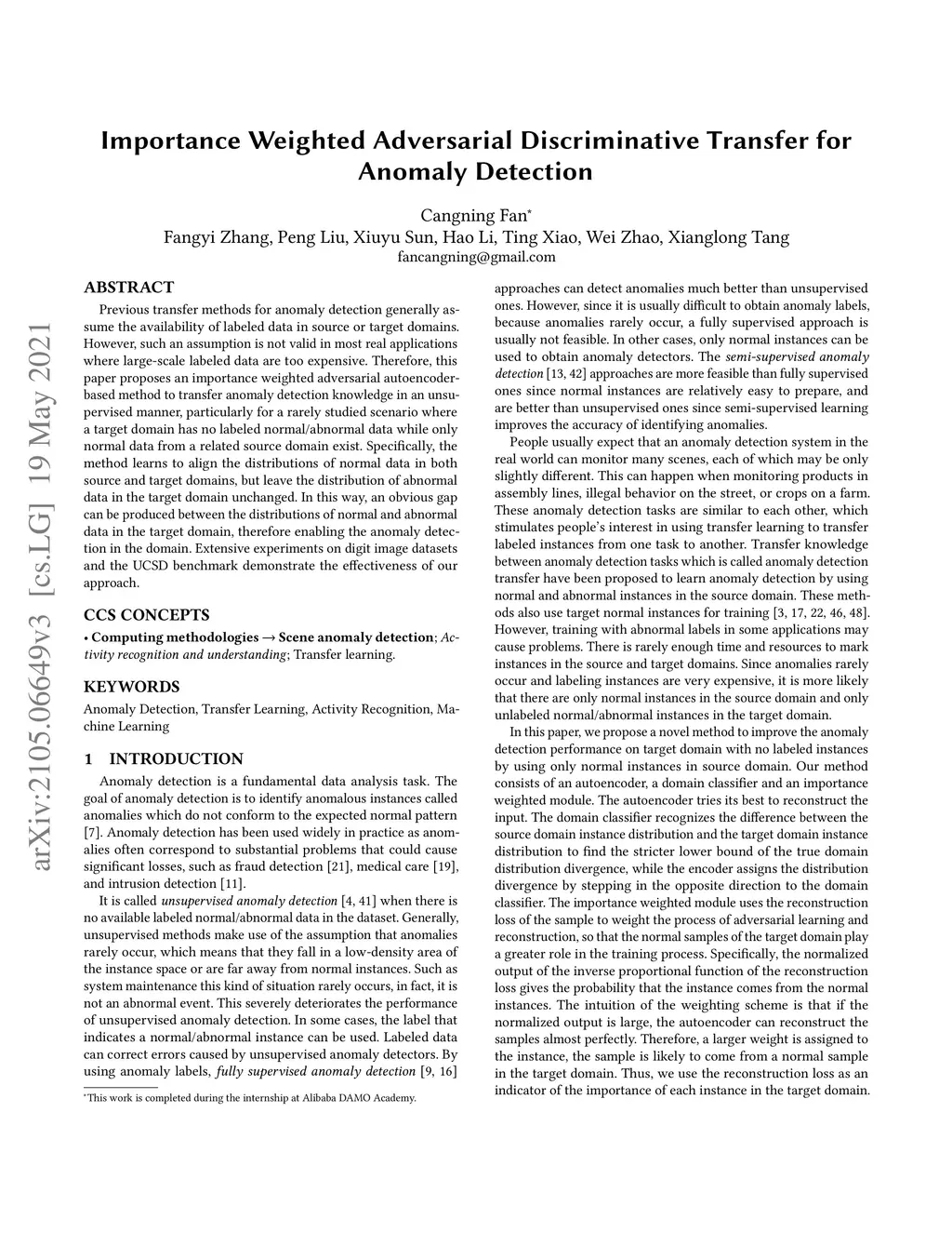 Importance Weighted Adversarial Discriminative Transfer for Anomaly