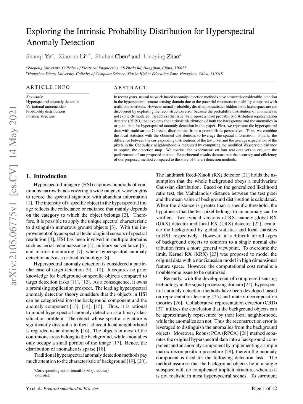 Exploring the Intrinsic Probability Distribution for Hyperspectral