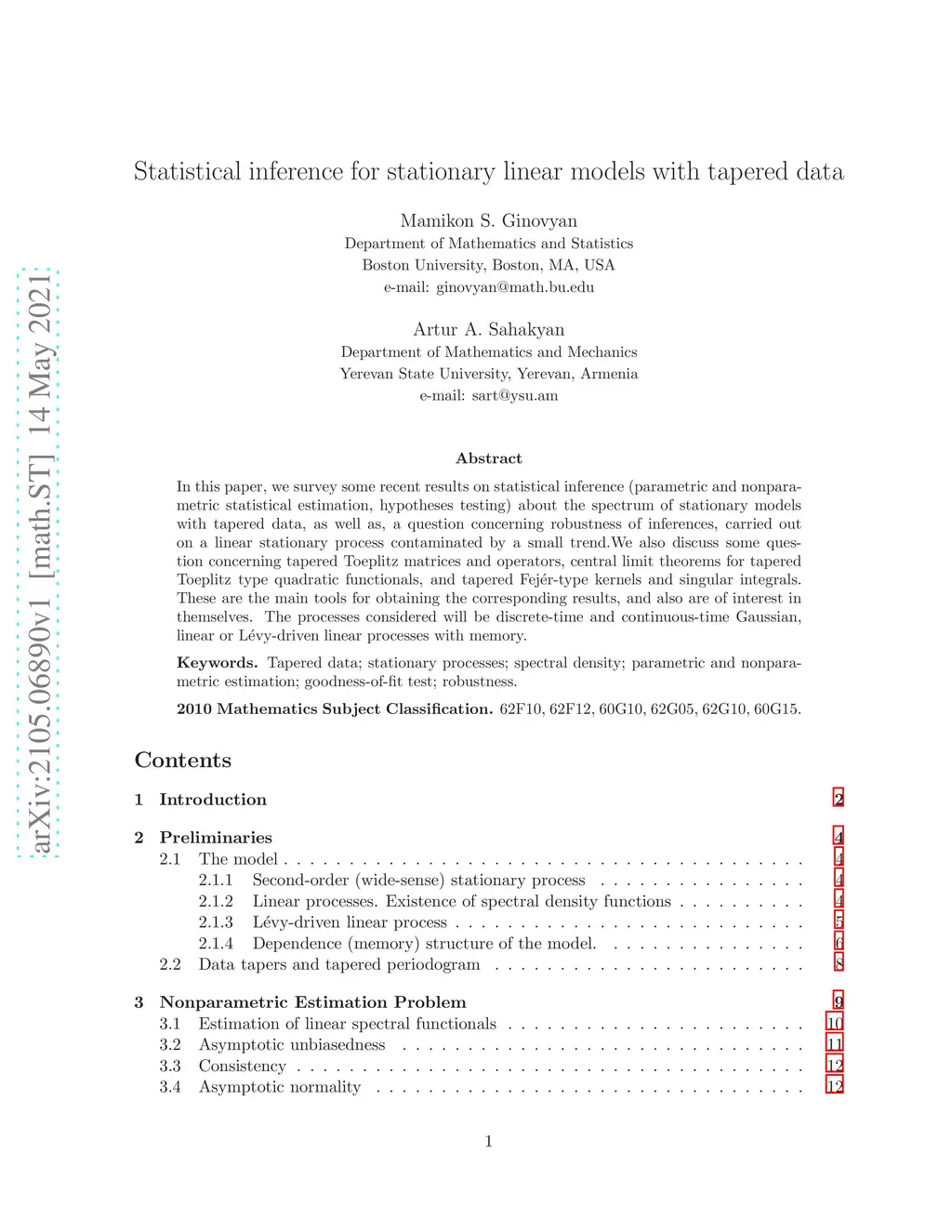 In this paper, we survey some recent results on statistical inference (parametric and nonparametric statistical estimation, hypotheses testing) about the spectrum of stationary models with tapered data, as well as, a question concerning robustness of inferences, carried out on a linear stationary process contaminated by a small trend. We also discuss some question concerning tapered Toeplitz matrices and operators, central limit theorems for tapered Toeplitz type quadratic functionals, and tapered Fej\ér-type kernels and singular integrals. These are the main tools for obtaining the corresponding results, and also are of interest in themselves. The processes considered will be discrete-time and continuous-time Gaussian, linear or L\évy-driven linear processes with memory.