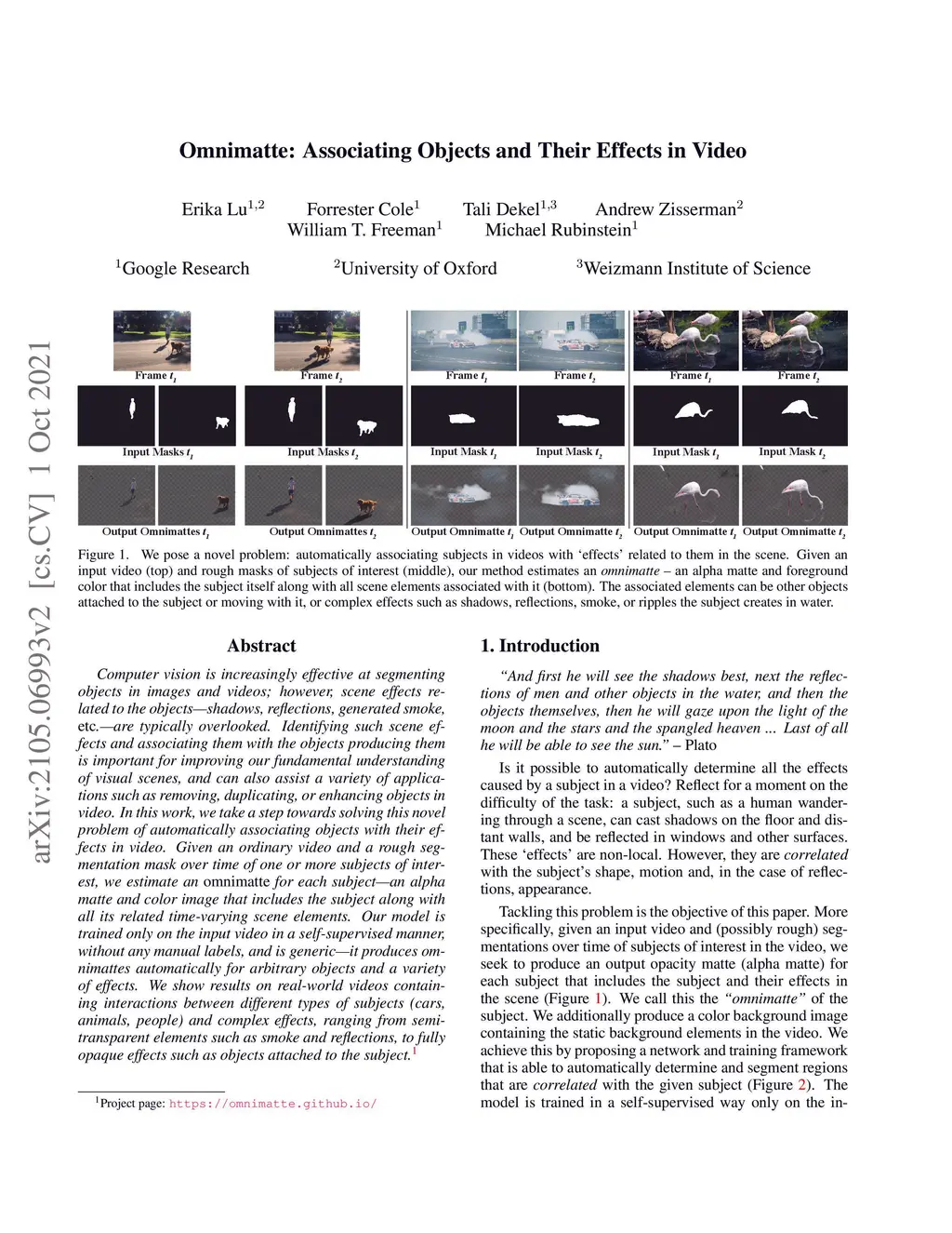 Computer vision is increasingly effective at segmenting objects in images and videos; however, scene effects related to the objects -- shadows, reflections, generated smoke, etc -- are typically overlooked. Identifying such scene effects and associating them with the objects producing them is important for improving our fundamental understanding of visual scenes, and can also assist a variety of applications such as removing, duplicating, or enhancing objects in video. In this work, we take a step towards solving this novel problem of automatically associating objects with their effects in video. Given an ordinary video and a rough segmentation mask over time of one or more subjects of interest, we estimate an omnimatte for each subject -- an alpha matte and color image that includes the subject along with all its related time-varying scene elements. Our model is trained only on the input video in a self-supervised manner, without any manual labels, and is generic -- it produces omnimattes automatically for arbitrary objects and a variety of effects. We show results on real-world videos containing interactions between different types of subjects (cars, animals, people) and complex effects, ranging from semi-transparent elements such as smoke and reflections, to fully opaque effects such as objects attached to the subject.