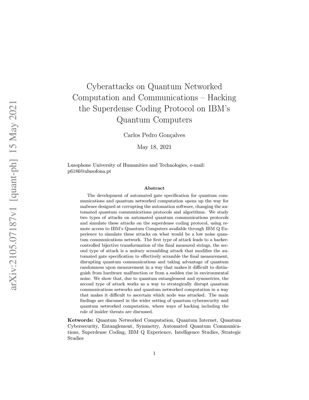 The development of automated gate specification for quantum communications and quantum networked computation opens up the way for malware designed at corrupting the automation software, changing the automated quantum communications protocols and algorithms. We study two types of attacks on automated quantum communications protocols and simulate these attacks on the superdense coding protocol, using remote access to IBM's Quantum Computers available through IBM Q Experience to simulate these attacks on what would be a low noise quantum communications network. The first type of attack leads to a hacker-controlled bijective transformation of the final measured strings, the second type of attack is a unitary scrambling attack that modifies the automated gate specification to effectively scramble the final measurement, disrupting quantum communications and taking advantage of quantum randomness upon measurement in a way that makes it difficult to distinguish from hardware malfunction or from a sudden rise in environmental noise. We show that, due to quantum entanglement and symmetries, the second type of attack works as a way to strategically disrupt quantum communications networks and quantum networked computation in a way that makes it difficult to ascertain which node was attacked. The main findings are discussed in the wider setting of quantum cybersecurity and quantum networked computation, where ways of hacking including the role of insider threats are discussed.