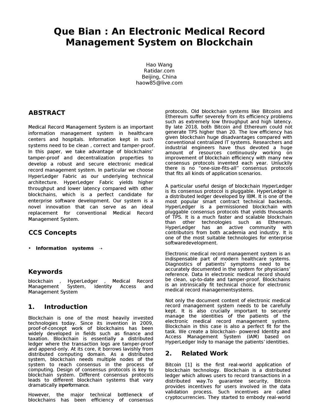 Que Bian: An Electronic Medical Record Management System on Blockchain