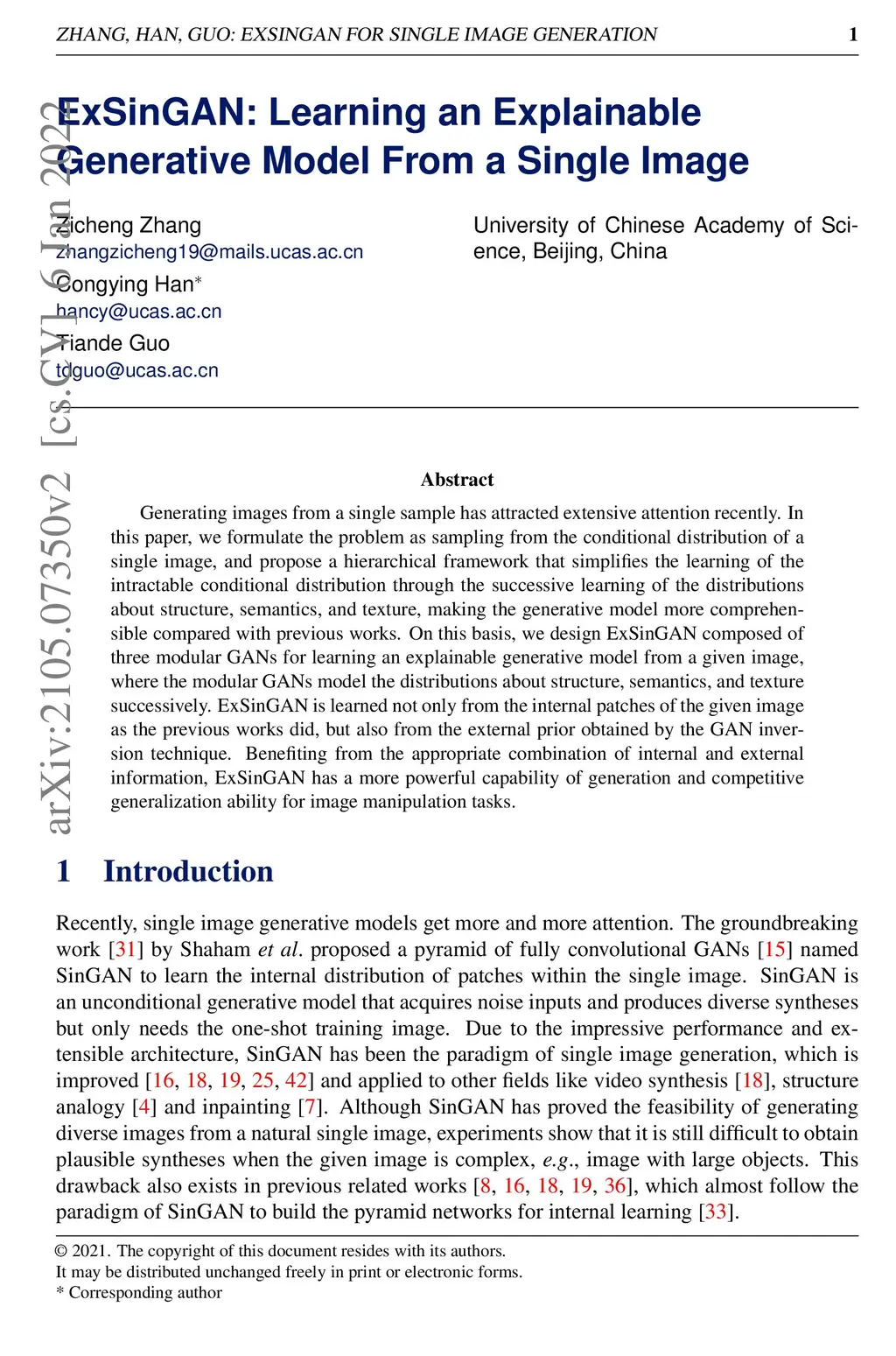 ExSinGAN: Learning an Explainable Generative Model from a Single Image