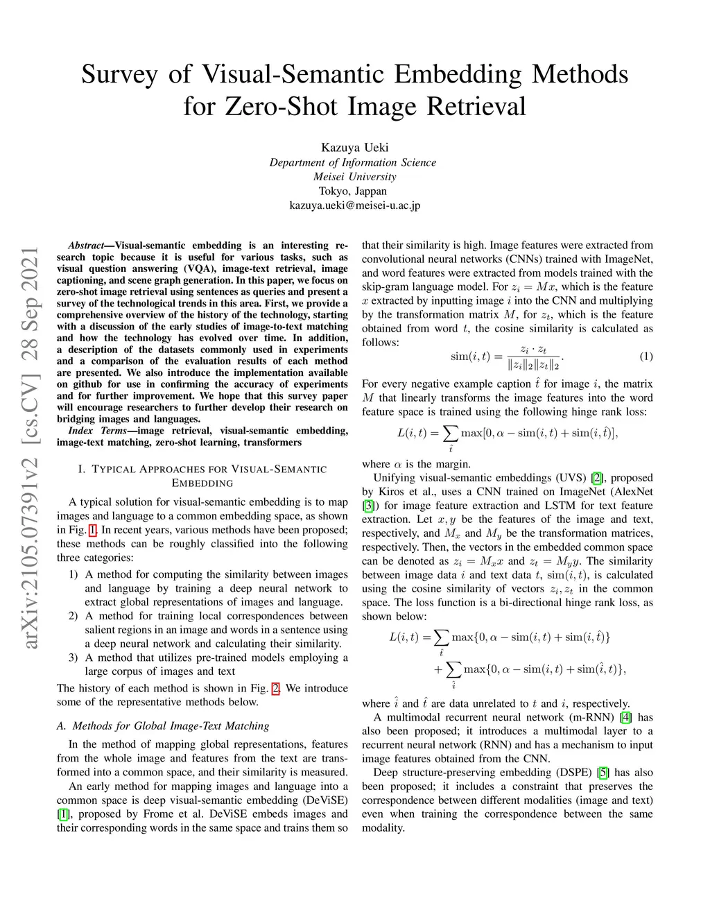 Survey of Visual-Semantic Embedding Methods for Zero-Shot Image