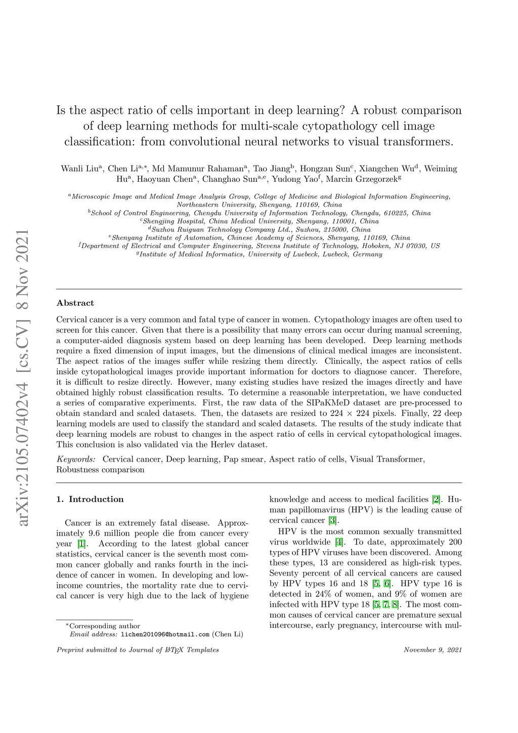 classification: from convolutional neural networks to visual transformers