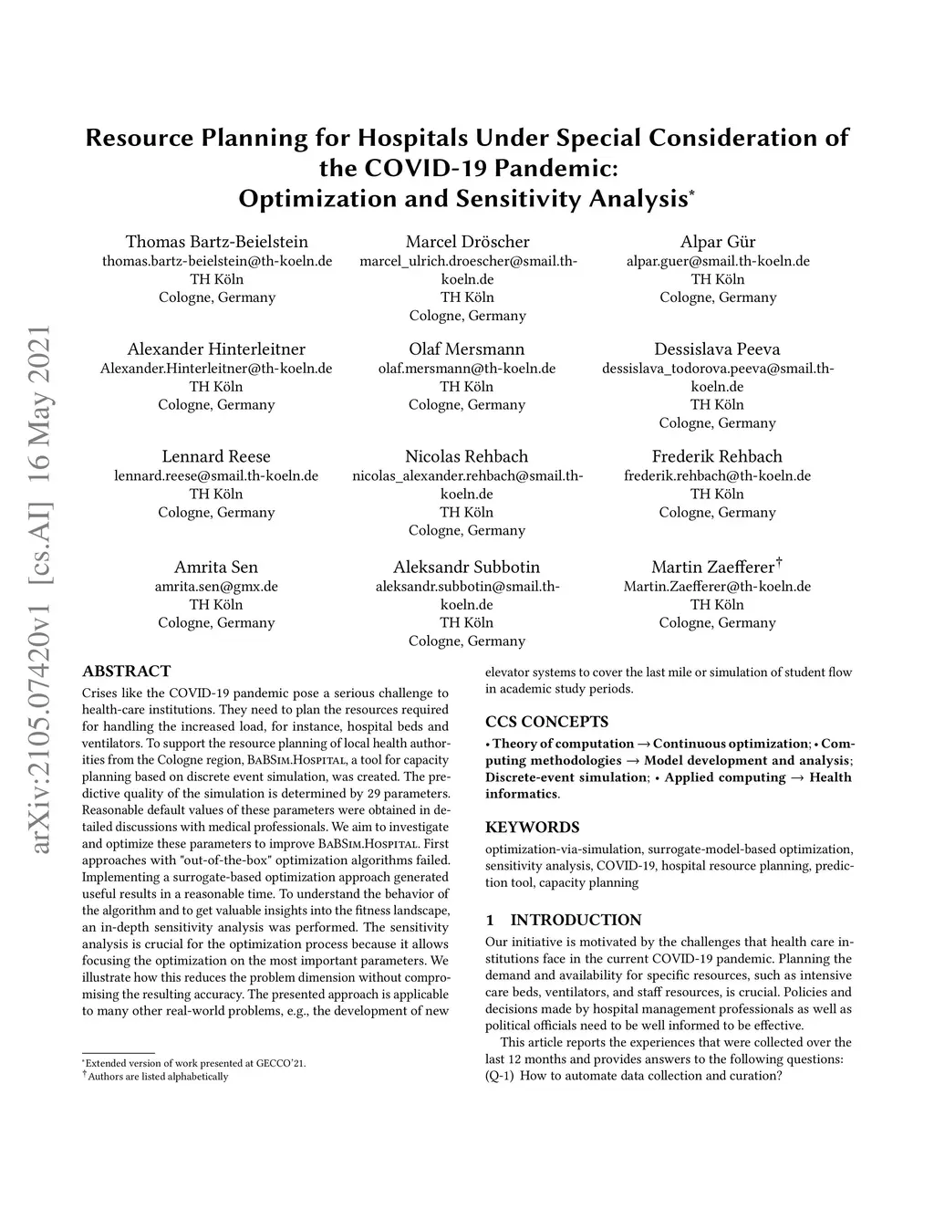 Crises like the COVID-19 pandemic pose a serious challenge to health-care institutions. They need to plan the resources required for handling the increased load, for instance, hospital beds and ventilators. To support the resource planning of local health authorities from the Cologne region, BaBSim.Hospital, a tool for capacity planning based on discrete event simulation, was created. The predictive quality of the simulation is determined by 29 parameters. Reasonable default values of these parameters were obtained in detailed discussions with medical professionals. We aim to investigate and optimize these parameters to improve BaBSim.Hospital. First approaches with "out-of-the-box" optimization algorithms failed. Implementing a surrogate-based optimization approach generated useful results in a reasonable time. To understand the behavior of the algorithm and to get valuable insights into the fitness landscape, an in-depth sensitivity analysis was performed. The sensitivity analysis is crucial for the optimization process because it allows focusing the optimization on the most important parameters. We illustrate how this reduces the problem dimension without compromising the resulting accuracy. The presented approach is applicable to many other real-world problems, e.g., the development of new elevator systems to cover the last mile or simulation of student flow in academic study periods.