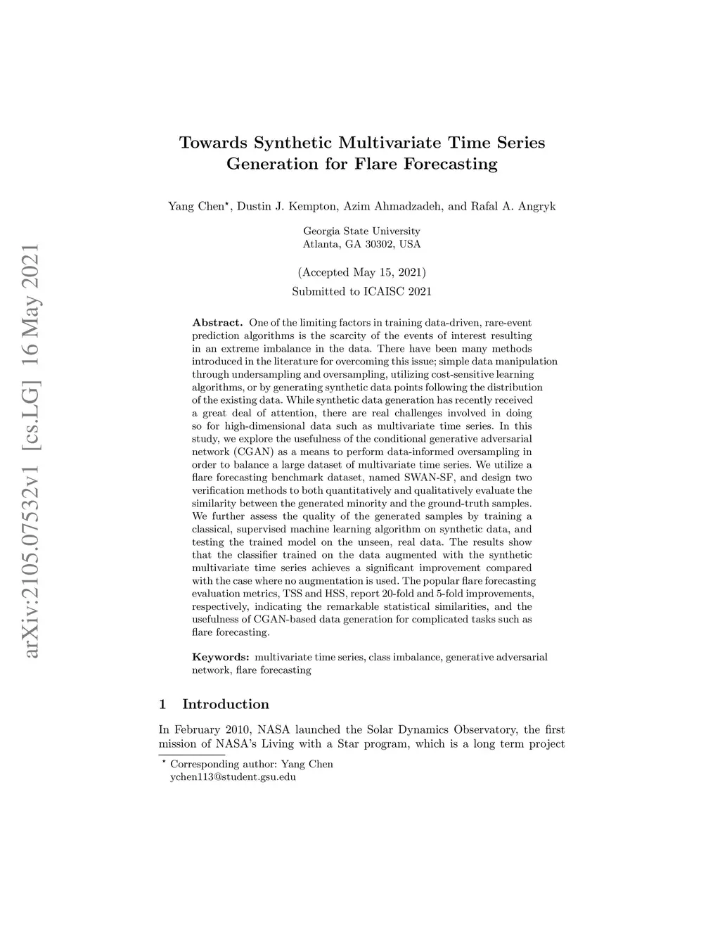 Towards Synthetic Multivariate Time Series Generation for Flare