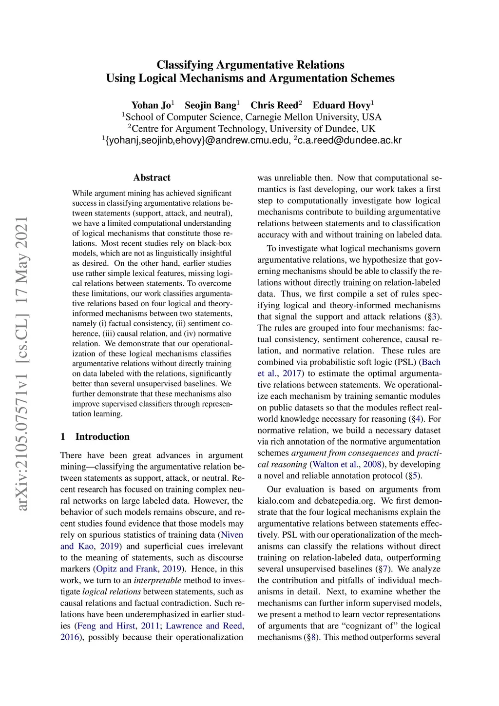 Classifying Argumentative Relations Using Logical Mechanisms and