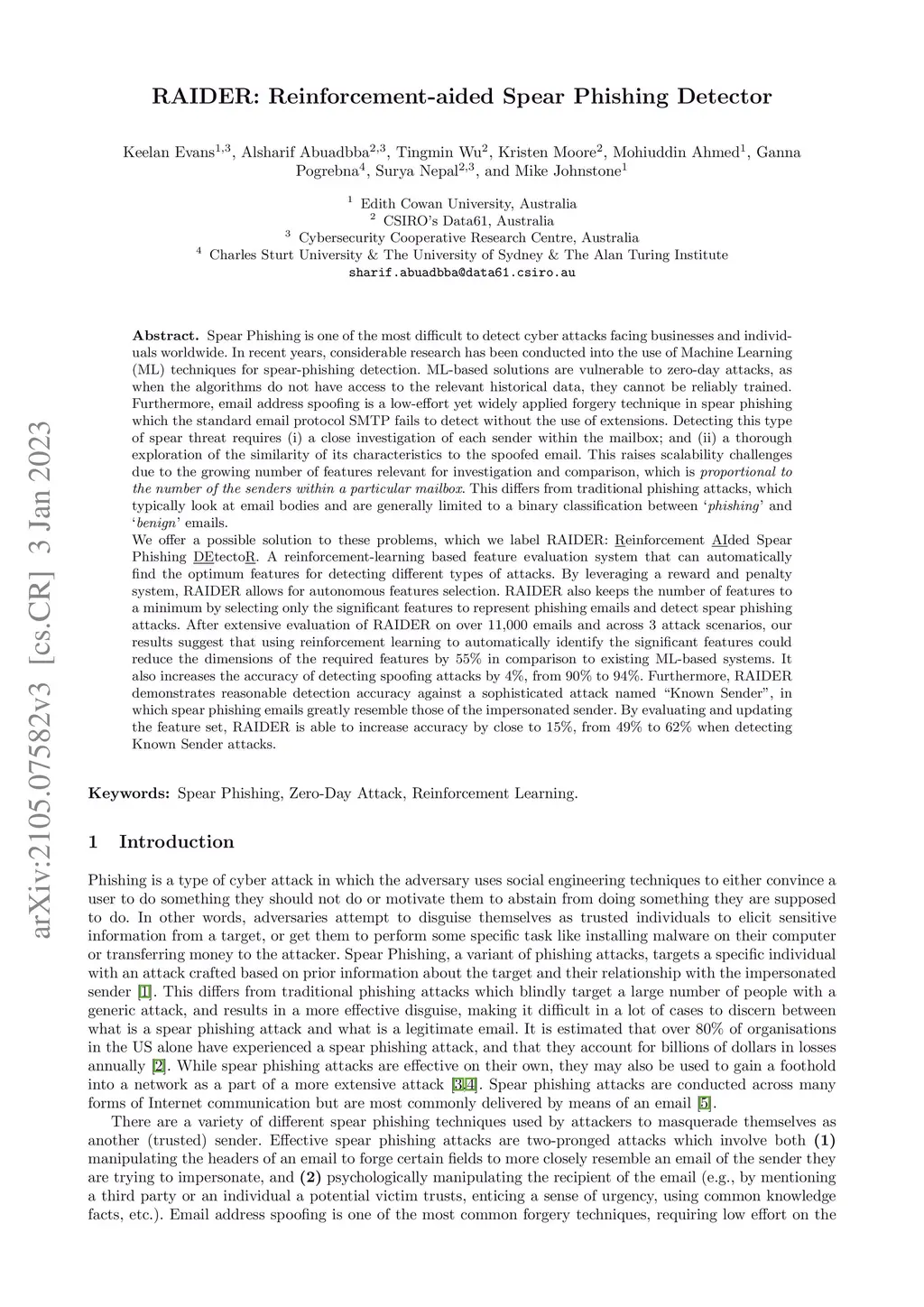 RAIDER: Reinforcement-aided Spear Phishing Detector