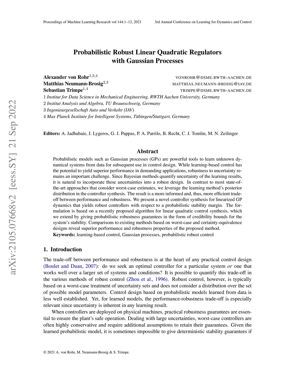 Probabilistic Robust Linear Quadratic Regulators with Gaussian Processes