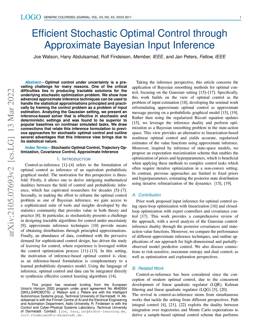 Efficient Stochastic Optimal Control through Approximate Bayesian Input