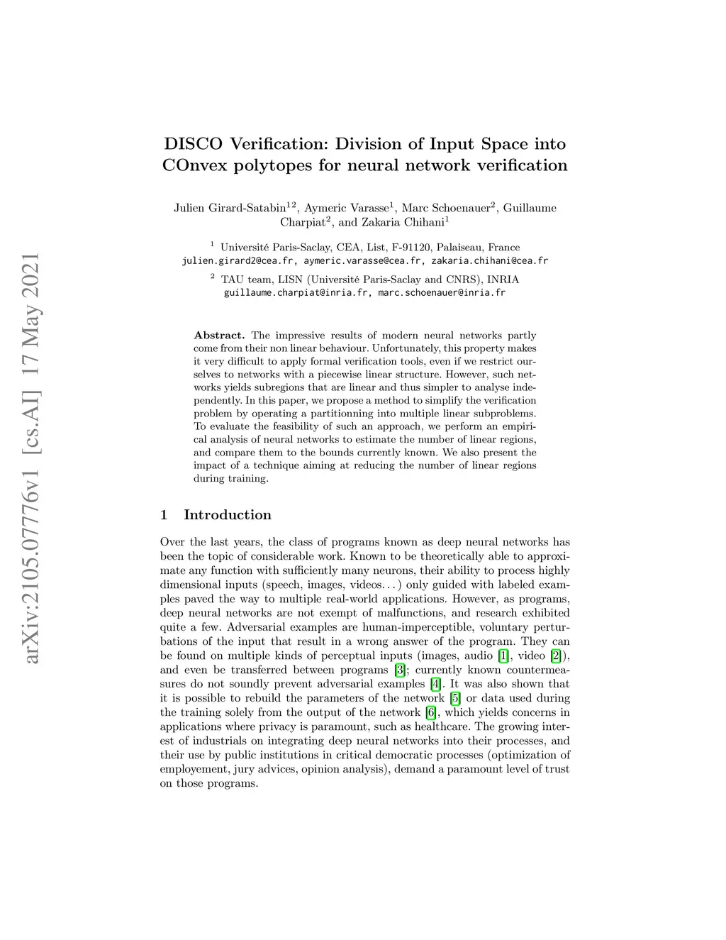 DISCO Verification: Division of Input Space into COnvex polytopes for