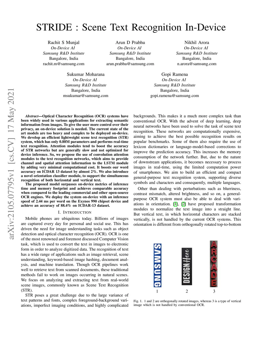 STRIDE : Scene Text Recognition In-Device
