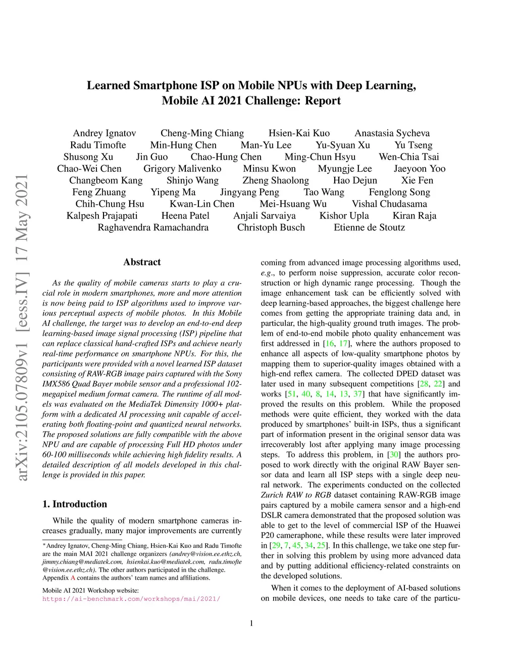 Learned Smartphone ISP on Mobile NPUs with Deep Learning, Mobile AI 2021