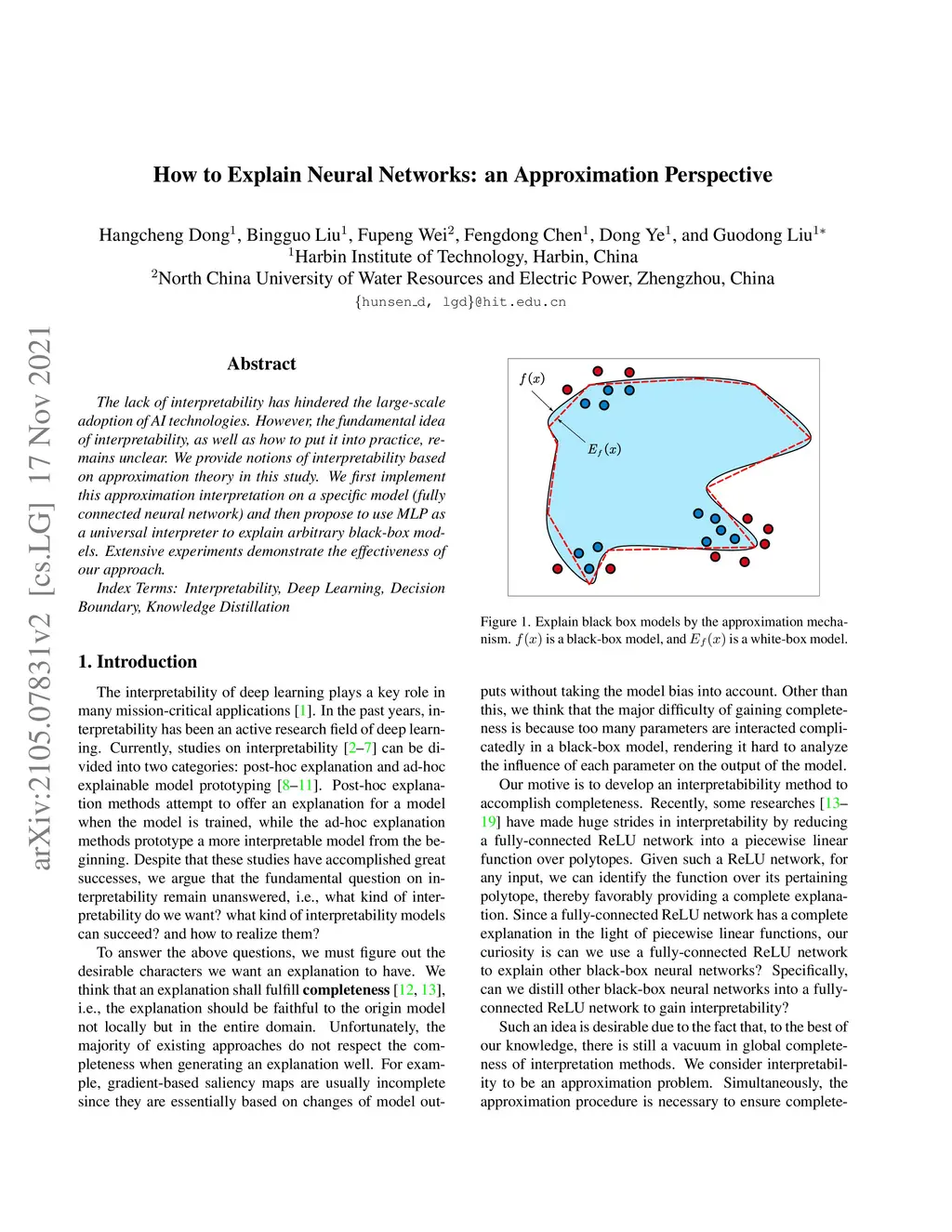 The lack of interpretability has hindered the large-scale adoption of AI technologies. However, the fundamental idea of interpretability, as well as how to put it into practice, remains unclear. We provide notions of interpretability based on approximation theory in this study. We first implement this approximation interpretation on a specific model (fully connected neural network) and then propose to use MLP as a universal interpreter to explain arbitrary black-box models. Extensive experiments demonstrate the effectiveness of our approach.