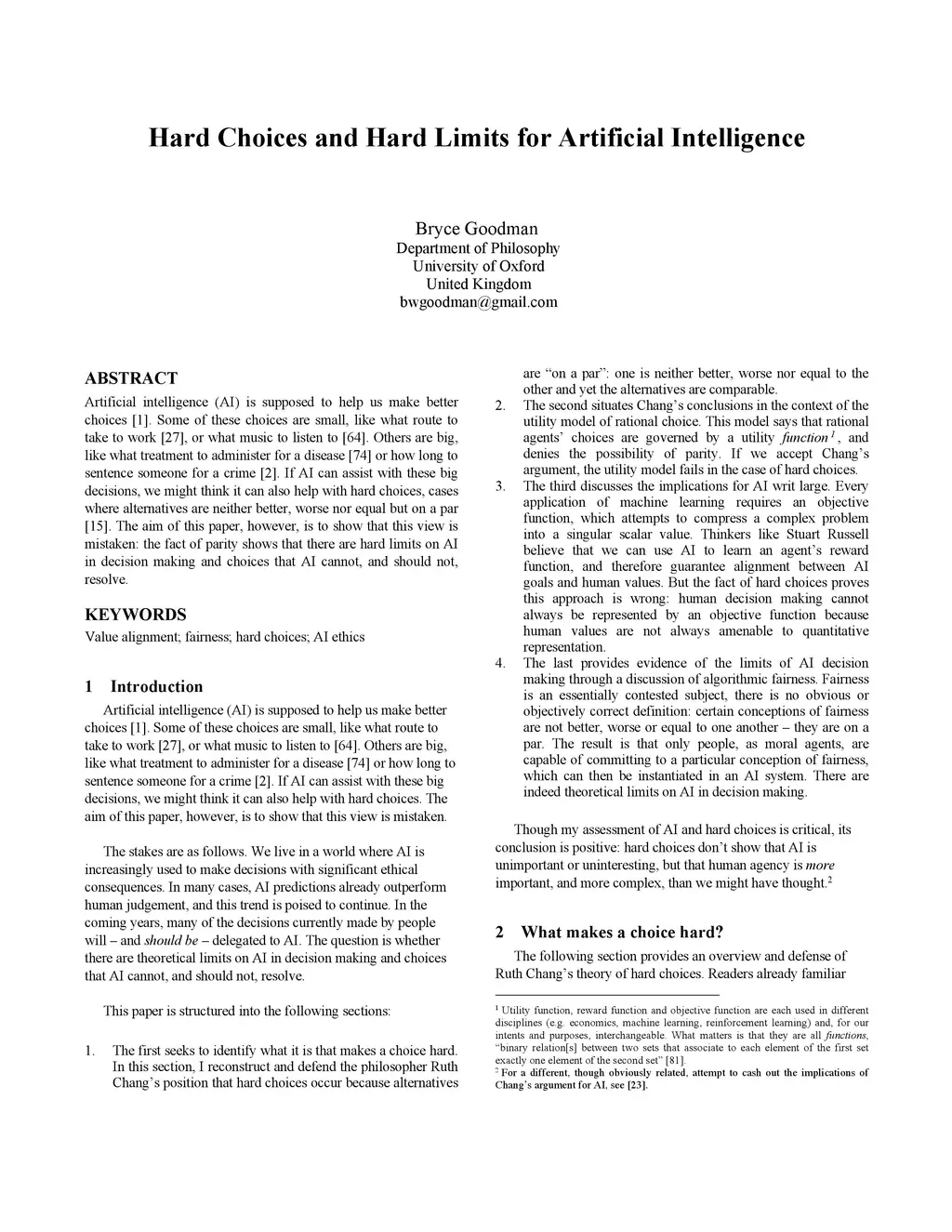 Hard Choices and Hard Limits for Artificial Intelligence