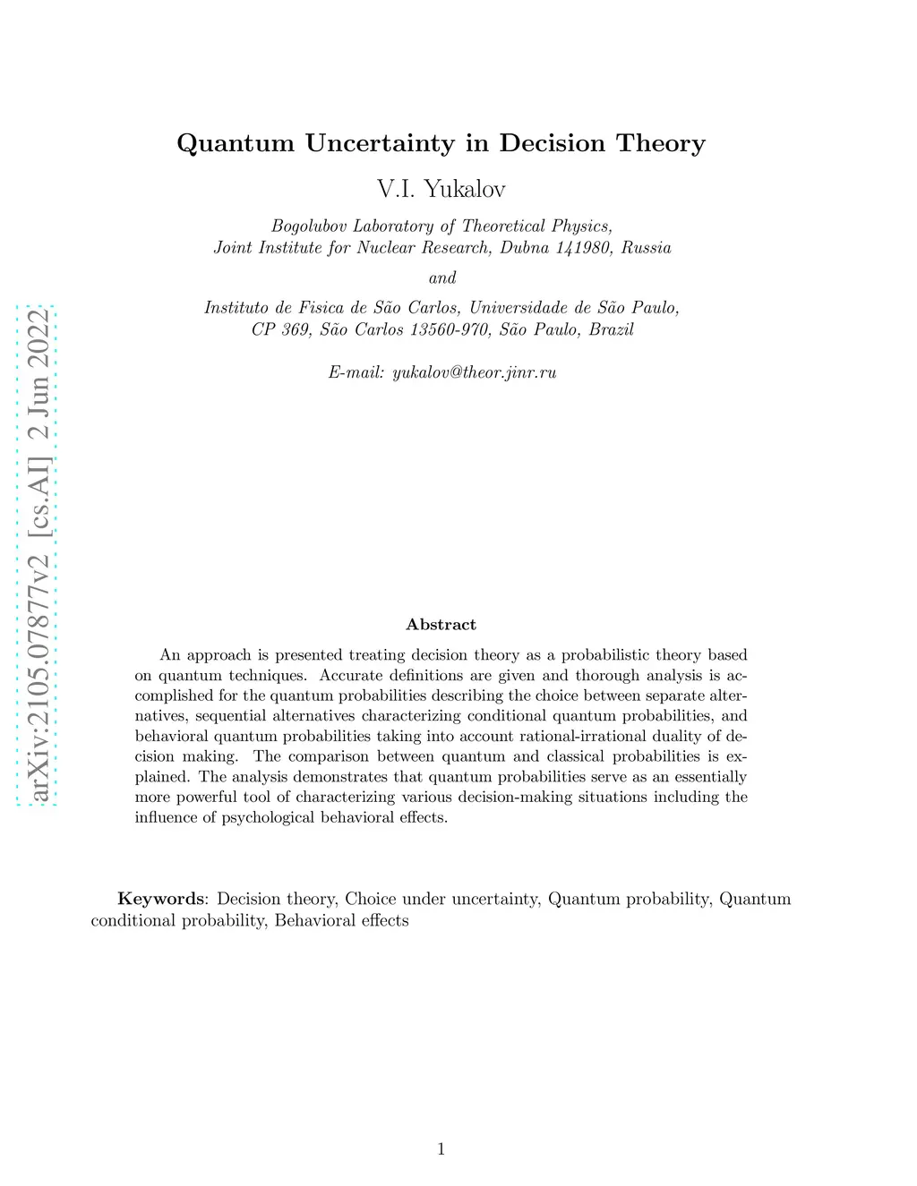 Quantum Uncertainty in Decision Theory