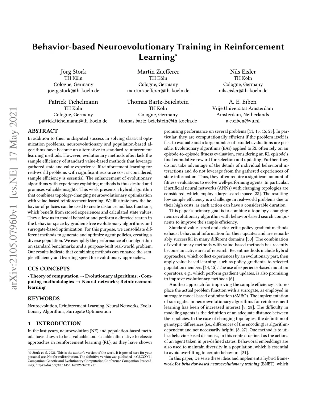 Behavior-based Neuroevolutionary Training in Reinforcement Learning