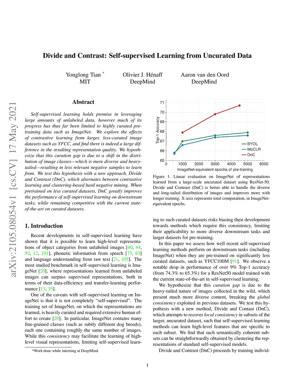 Divide and Contrast: Self-supervised Learning from Uncurated Data