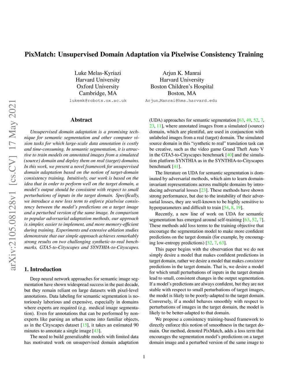 PixMatch: Unsupervised Domain Adaptation via Pixelwise Consistency