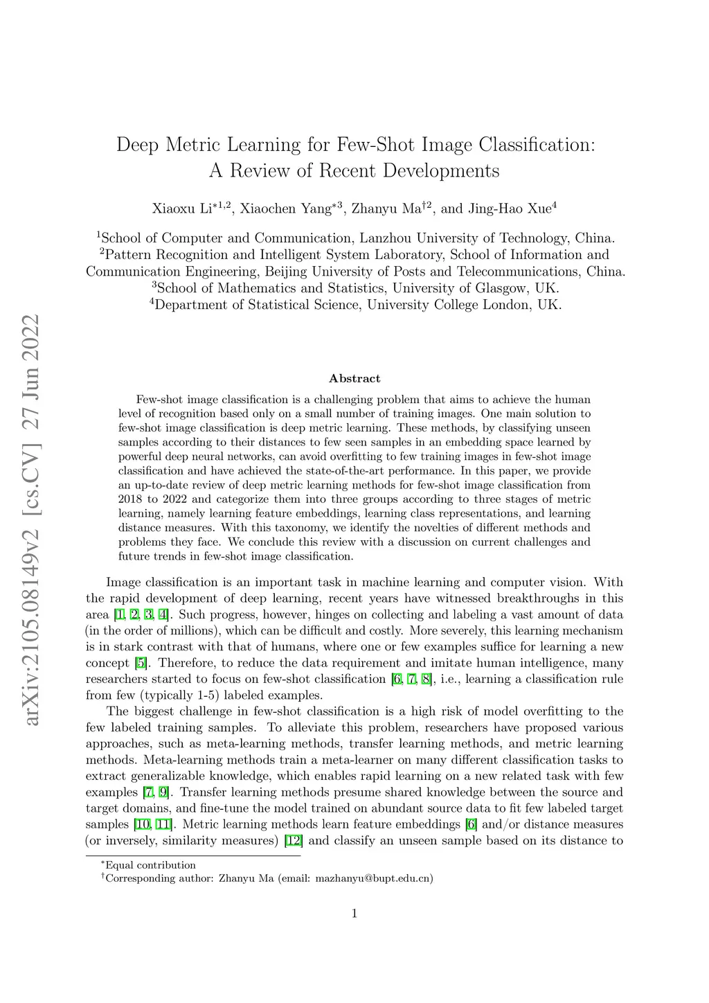 Deep Metric Learning for Few-Shot Image Classification: A Review of