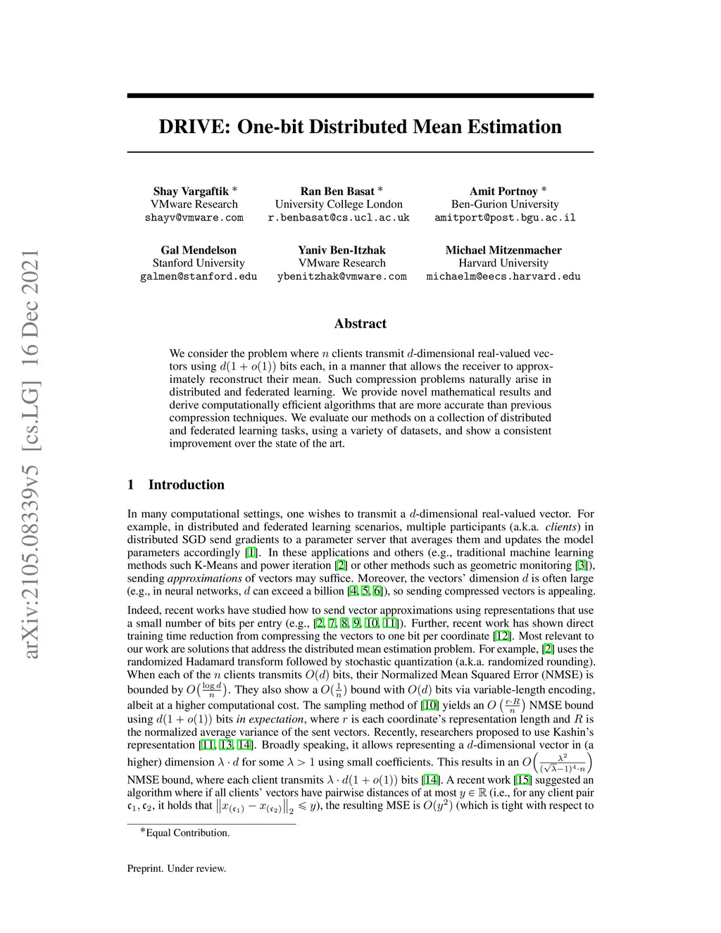 We consider the problem where clients transmit -dimensional real-valued vectors using bits each, in a manner that allows the receiver to approximately reconstruct their mean. Such compression problems naturally arise in distributed and federated learning. We provide novel mathematical results and derive computationally efficient algorithms that are more accurate than previous compression techniques. We evaluate our methods on a collection of distributed and federated learning tasks, using a variety of datasets, and show a consistent improvement over the state of the art.