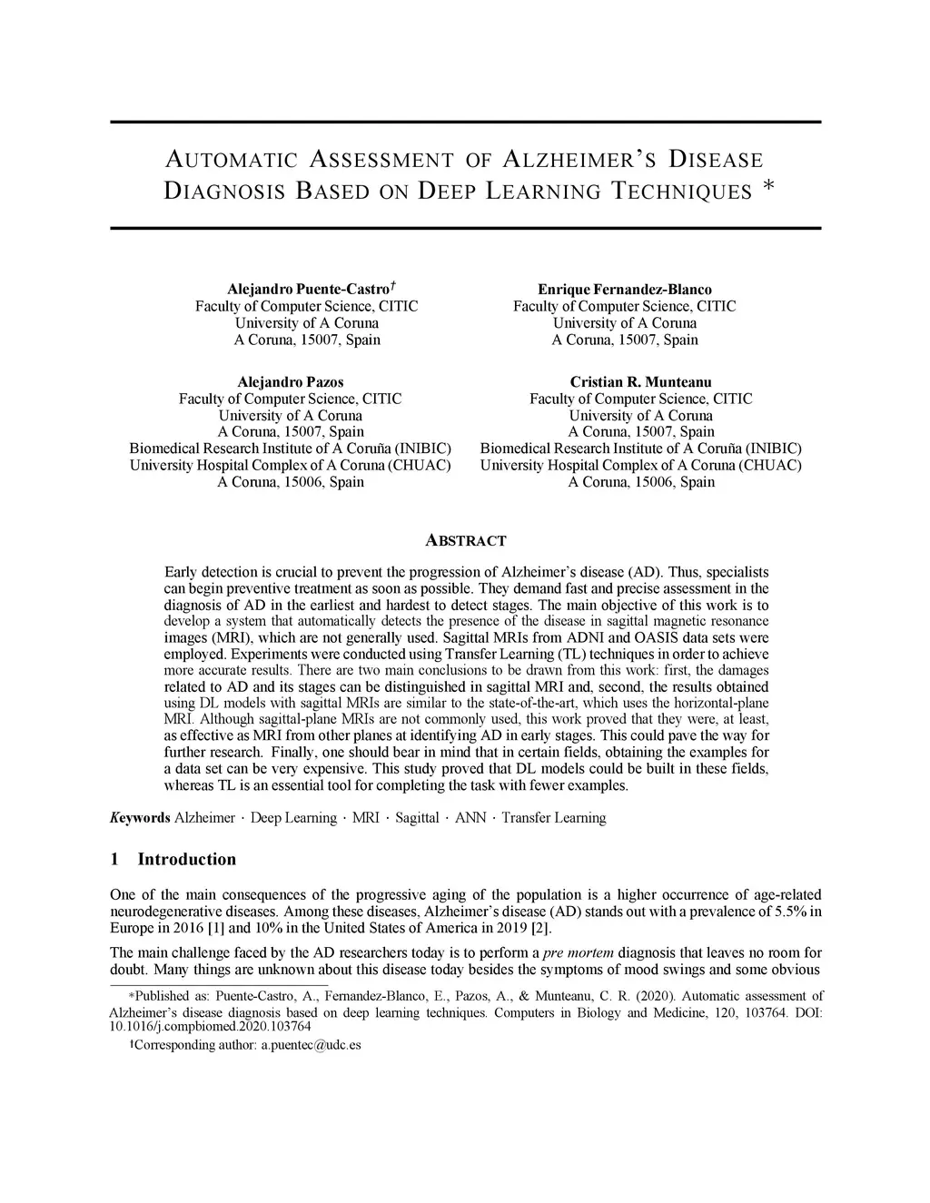 Automatic Assessment of Alzheimer's Disease Diagnosis Based on Deep