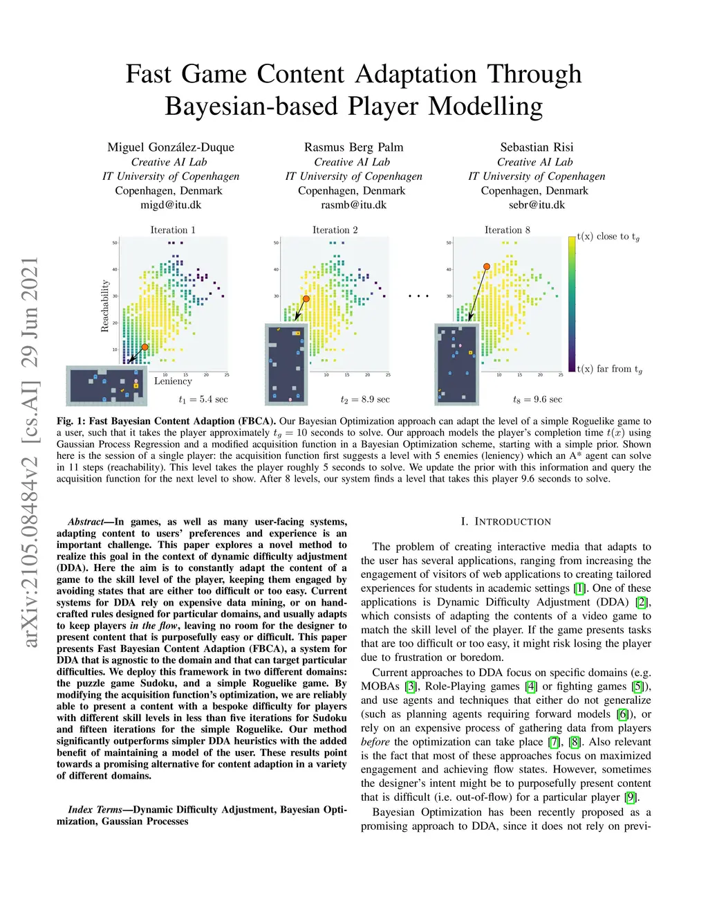Fast Game Content Adaptation Through Bayesian-based Player Modelling