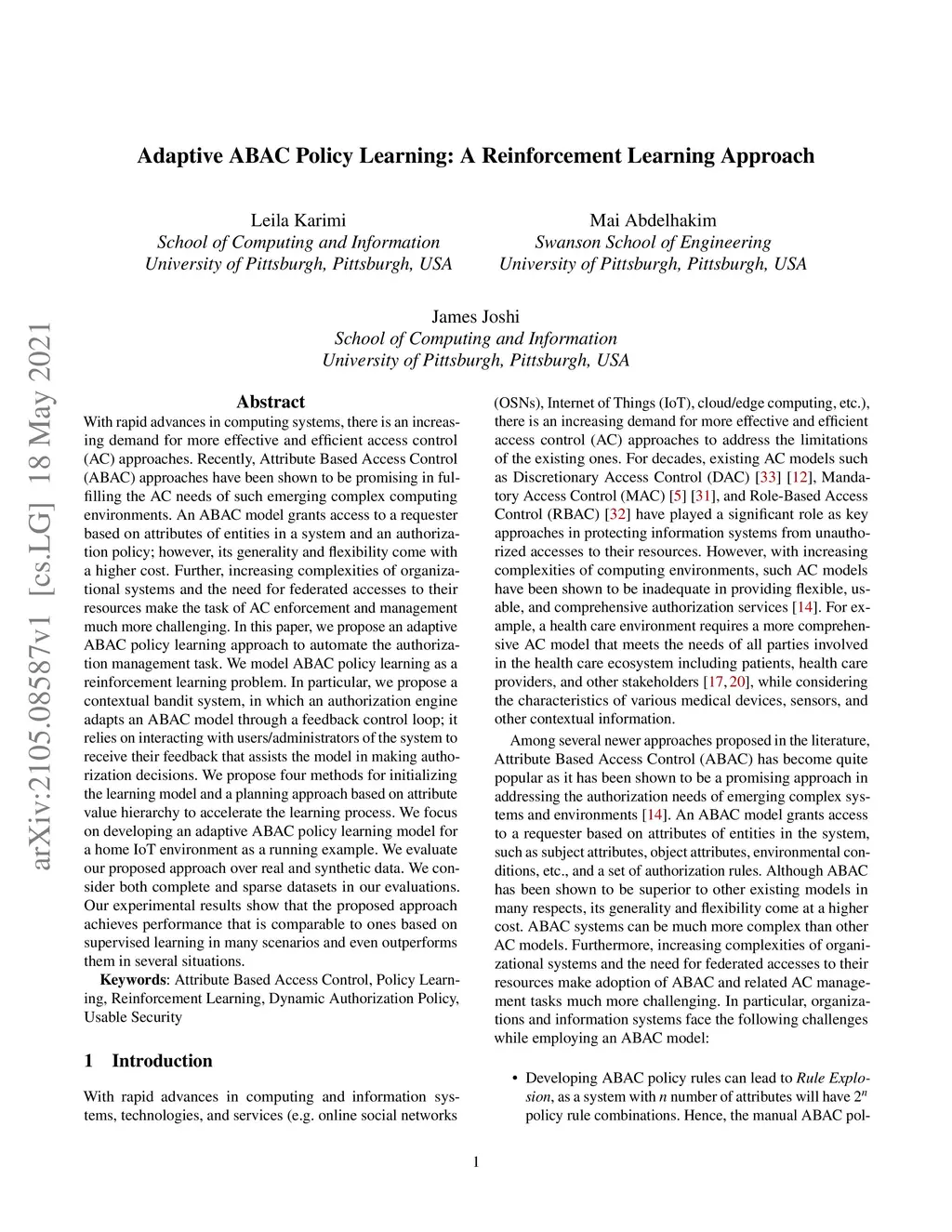 Adaptive ABAC Policy Learning: A Reinforcement Learning Approach