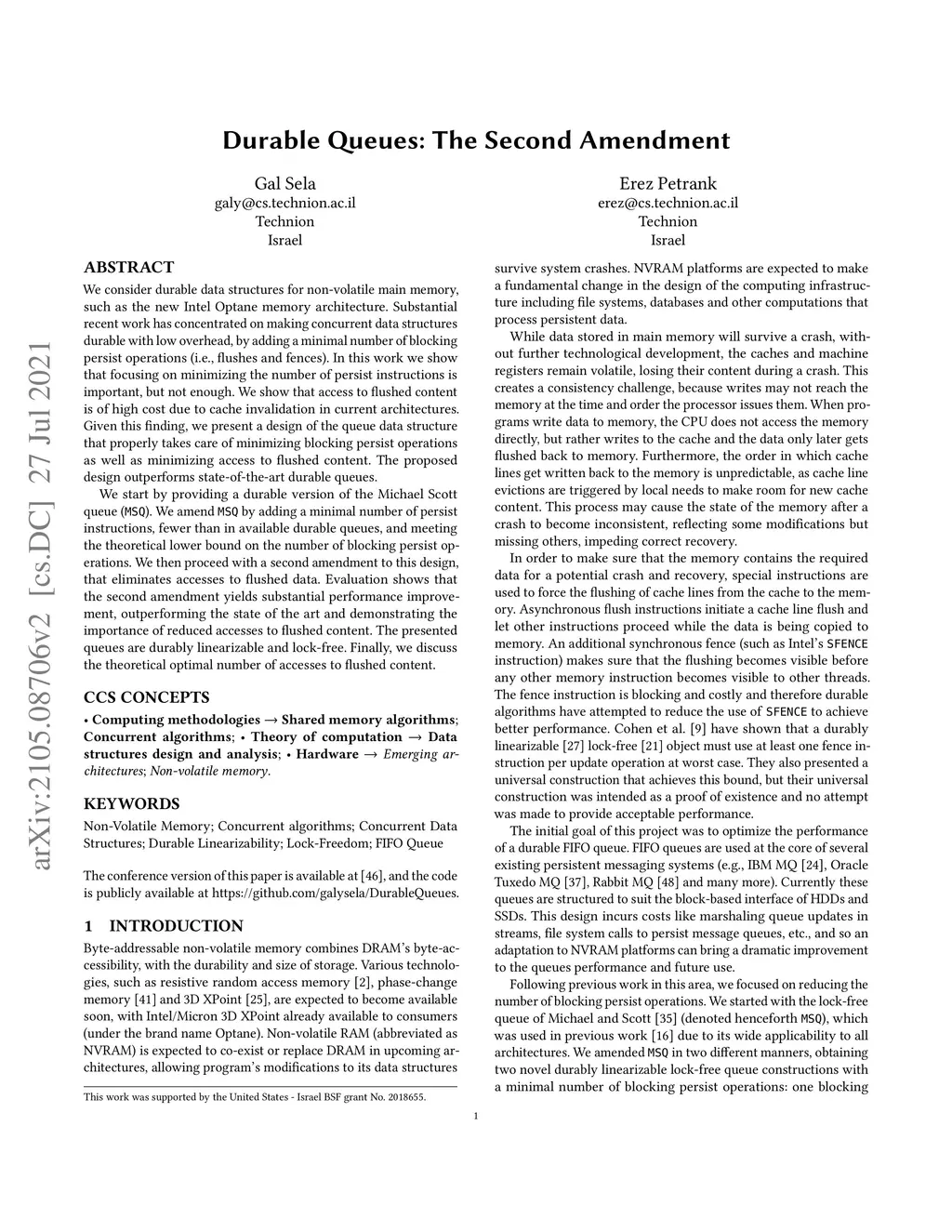 We consider durable data structures for non-volatile main memory, such as the new Intel Optane memory architecture. Substantial recent work has concentrated on making concurrent data structures durable with low overhead, by adding a minimal number of blocking persist operations (i.e., flushes and fences). In this work we show that focusing on minimizing the number of persist instructions is important, but not enough. We show that access to flushed content is of high cost due to cache invalidation in current architectures. Given this finding, we present a design of the queue data structure that properly takes care of minimizing blocking persist operations as well as minimizing access to flushed content. The proposed design outperforms state-of-the-art durable queues. We start by providing a durable version of the Michael Scott queue (MSQ). We amend MSQ by adding a minimal number of persist instructions, fewer than in available durable queues, and meeting the theoretical lower bound on the number of blocking persist operations. We then proceed with a second amendment to this design, that eliminates accesses to flushed data. Evaluation shows that the second amendment yields substantial performance improvement, outperforming the state of the art and demonstrating the importance of reduced accesses to flushed content. The presented queues are durably linearizable and lock-free. Finally, we discuss the theoretical optimal number of accesses to flushed content.