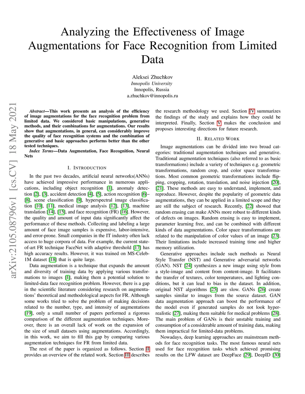 This work presents an analysis of the efficiency of image augmentations for the face recognition problem from limited data. We considered basic manipulations, generative methods, and their combinations for augmentations. Our results show that augmentations, in general, can considerably improve the quality of face recognition systems and the combination of generative and basic approaches performs better than the other tested techniques.
