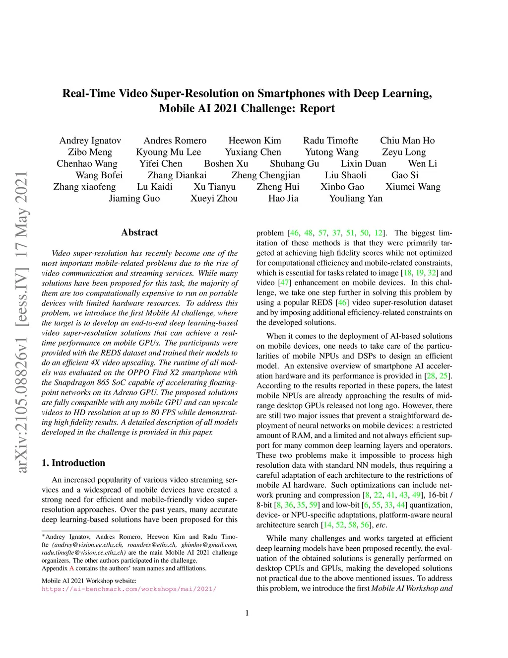 Mobile AI 2021 Challenge: Report