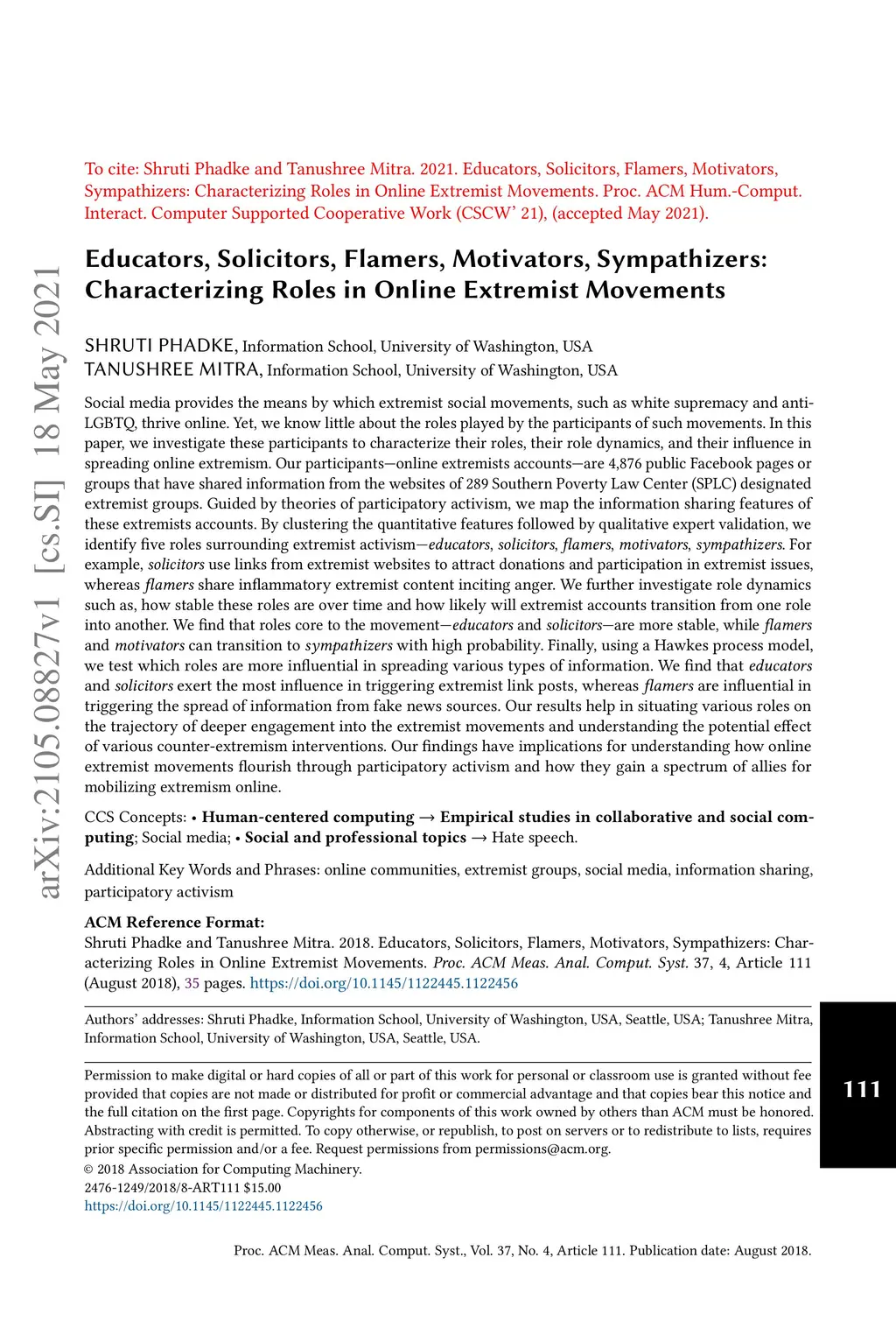 Educators, Solicitors, Flamers, Motivators, Sympathizers: Characterizing