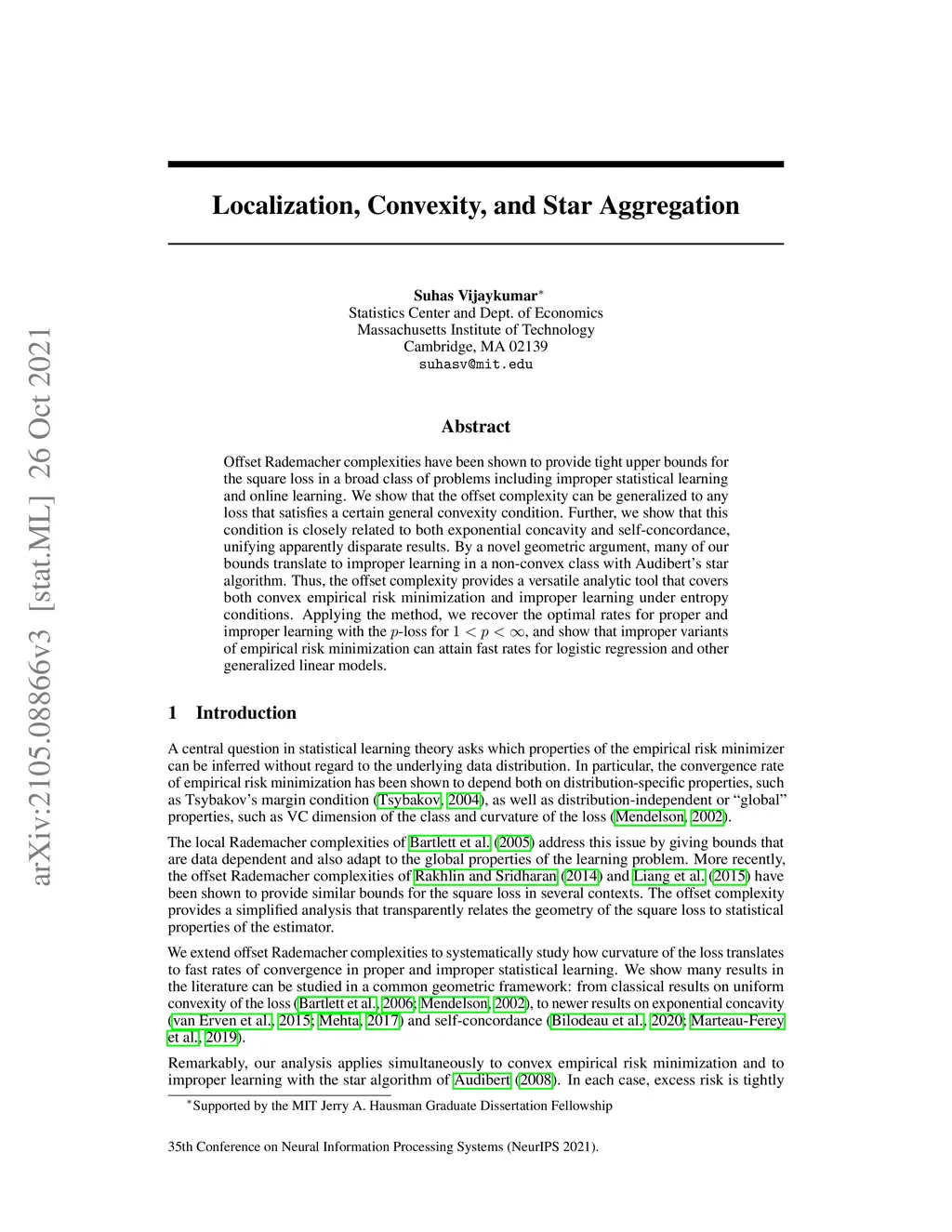 Offset Rademacher complexities have been shown to provide tight upper bounds for the square loss in a broad class of problems including improper statistical learning and online learning. We show that the offset complexity can be generalized to any loss that satisfies a certain general convexity condition. Further, we show that this condition is closely related to both exponential concavity and self-concordance, unifying apparently disparate results. By a novel geometric argument, many of our bounds translate to improper learning in a non-convex class with Audibert's star algorithm. Thus, the offset complexity provides a versatile analytic tool that covers both convex empirical risk minimization and improper learning under entropy conditions. Applying the method, we recover the optimal rates for proper and improper learning with the -loss for , and show that improper variants of empirical risk minimization can attain fast rates for logistic regression and other generalized linear models.