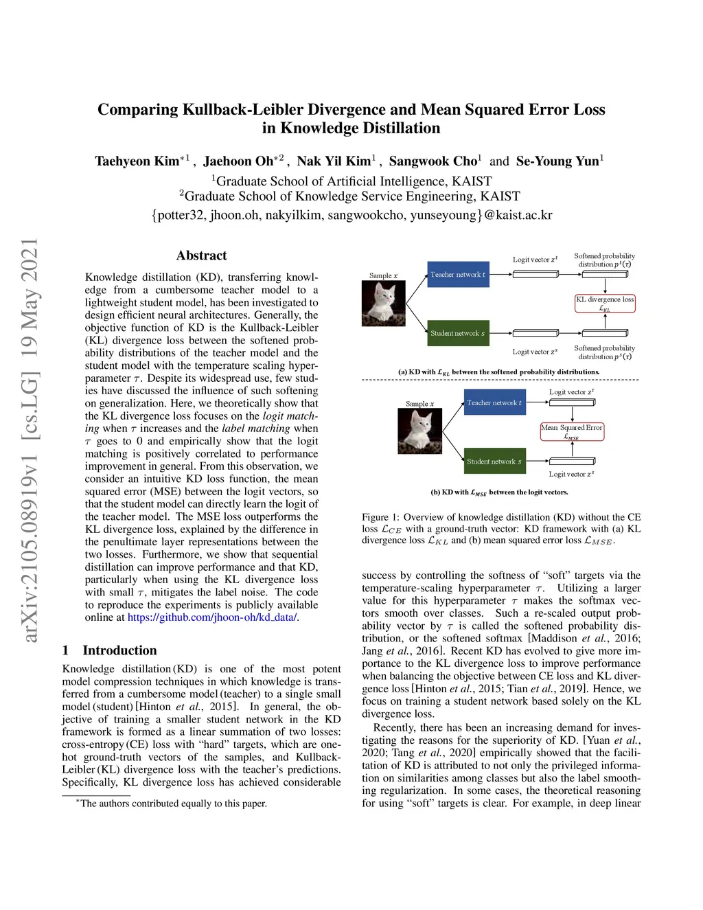Knowledge distillation (KD), transferring knowledge from a cumbersome teacher model to a lightweight student model, has been investigated to design efficient neural architectures. Generally, the objective function of KD is the Kullback-Leibler (KL) divergence loss between the softened probability distributions of the teacher model and the student model with the temperature scaling hyperparameter tau. Despite its widespread use, few studies have discussed the influence of such softening on generalization. Here, we theoretically show that the KL divergence loss focuses on the logit matching when tau increases and the label matching when tau goes to 0 and empirically show that the logit matching is positively correlated to performance improvement in general. From this observation, we consider an intuitive KD loss function, the mean squared error (MSE) between the logit vectors, so that the student model can directly learn the logit of the teacher model. The MSE loss outperforms the KL divergence loss, explained by the difference in the penultimate layer representations between the two losses. Furthermore, we show that sequential distillation can improve performance and that KD, particularly when using the KL divergence loss with small tau, mitigates the label noise. The code to reproduce the experiments is publicly available online at https://github.com/jhoon-oh/kd_data/.