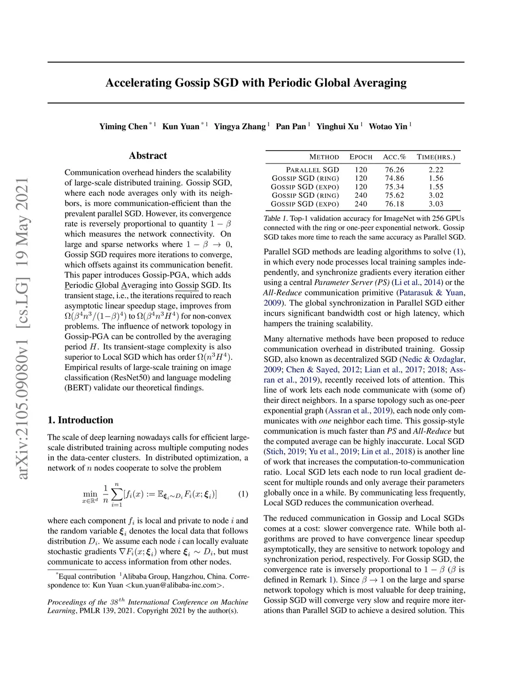 Communication overhead hinders the scalability of large-scale distributed training. Gossip SGD, where each node averages only with its neighbors, is more communication-efficient than the prevalent parallel SGD. However, its convergence rate is reversely proportional to quantity which measures the network connectivity. On large and sparse networks where , Gossip SGD requires more iterations to converge, which offsets against its communication benefit. This paper introduces Gossip-PGA, which adds Periodic Global Averaging into Gossip SGD. Its transient stage, i.e., the iterations required to reach asymptotic linear speedup stage, improves from to for non-convex problems. The influence of network topology in Gossip-PGA can be controlled by the averaging period . Its transient-stage complexity is also superior to Local SGD which has order . Empirical results of large-scale training on image classification (ResNet50) and language modeling (BERT) validate our theoretical findings.