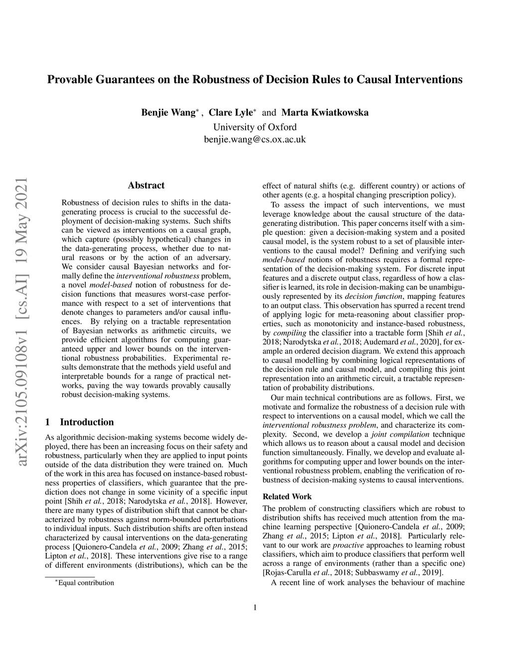Robustness of decision rules to shifts in the data-generating process is crucial to the successful deployment of decision-making systems. Such shifts can be viewed as interventions on a causal graph, which capture (possibly hypothetical) changes in the data-generating process, whether due to natural reasons or by the action of an adversary. We consider causal Bayesian networks and formally define the interventional robustness problem, a novel model-based notion of robustness for decision functions that measures worst-case performance with respect to a set of interventions that denote changes to parameters and/or causal influences. By relying on a tractable representation of Bayesian networks as arithmetic circuits, we provide efficient algorithms for computing guaranteed upper and lower bounds on the interventional robustness probabilities. Experimental results demonstrate that the methods yield useful and interpretable bounds for a range of practical networks, paving the way towards provably causally robust decision-making systems.