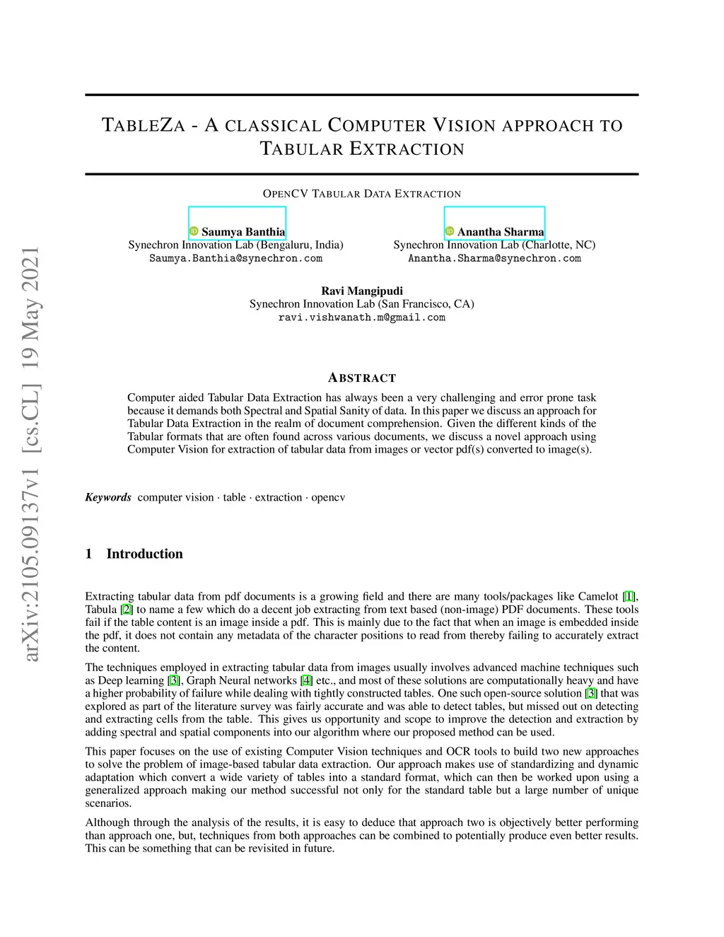 TableZa -- A classical Computer Vision approach to Tabular Extraction