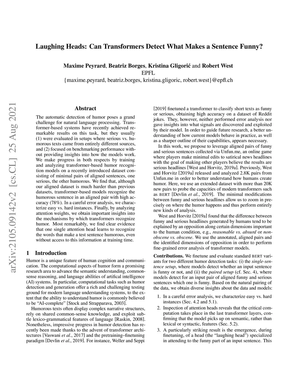 Laughing Heads: Can Transformers Detect What Makes a Sentence Funny?