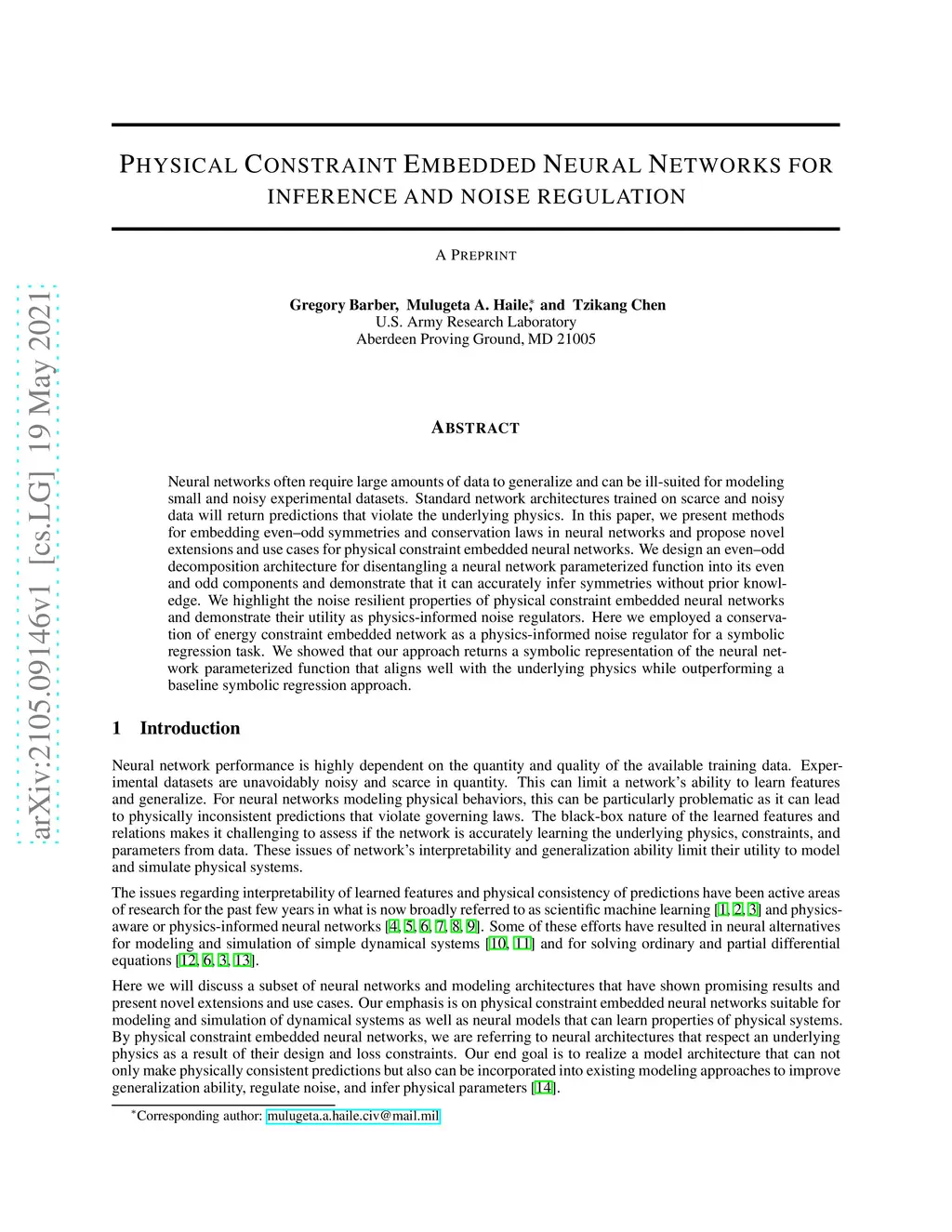 Physical Constraint Embedded Neural Networks for inference and noise