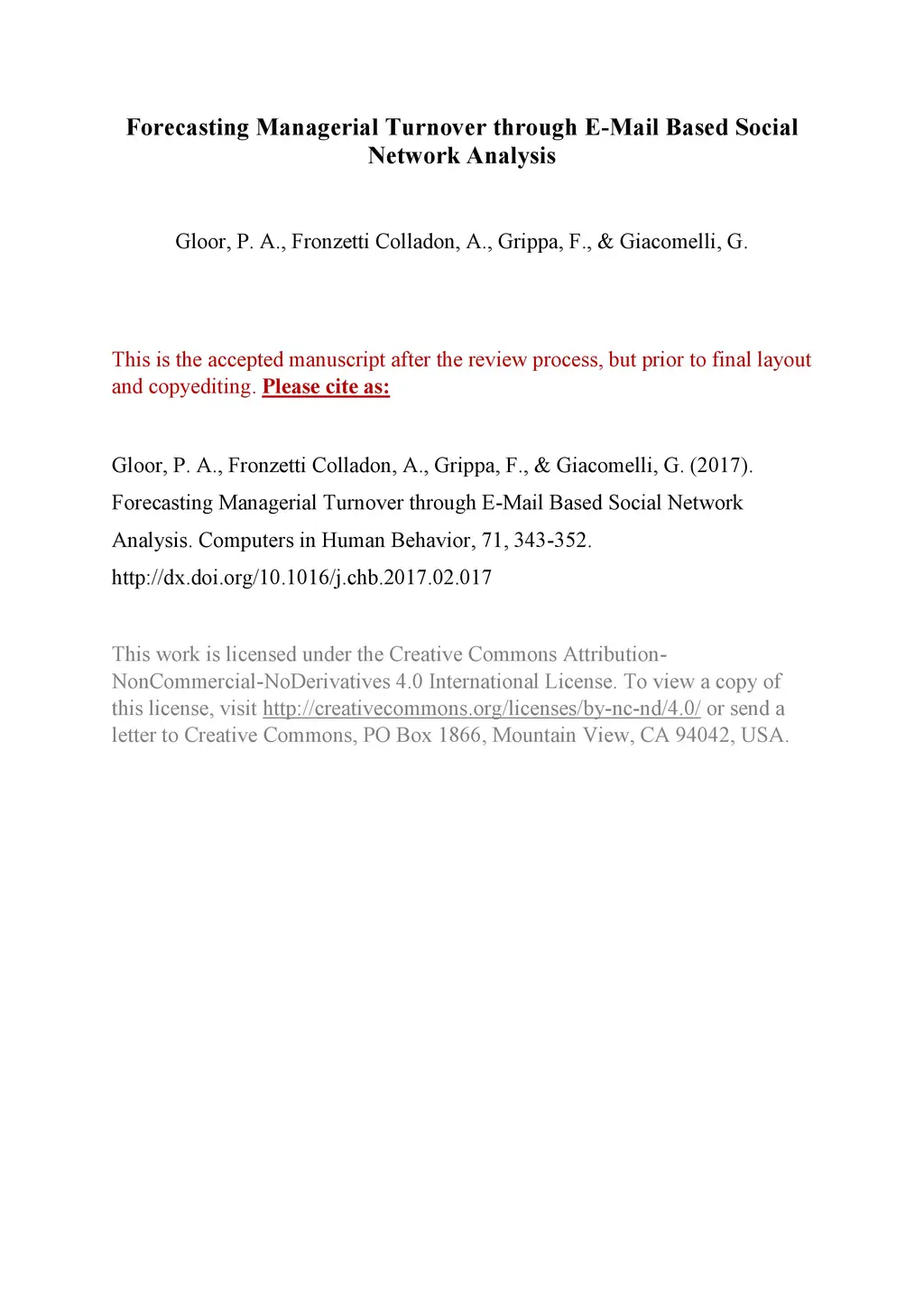 Forecasting managerial turnover through e-mail based social network