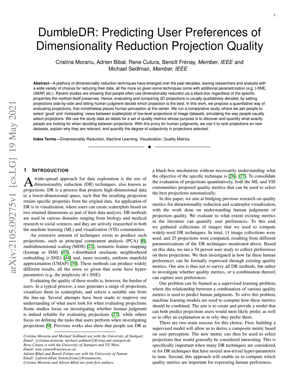DumbleDR: Predicting User Preferences of Dimensionality Reduction