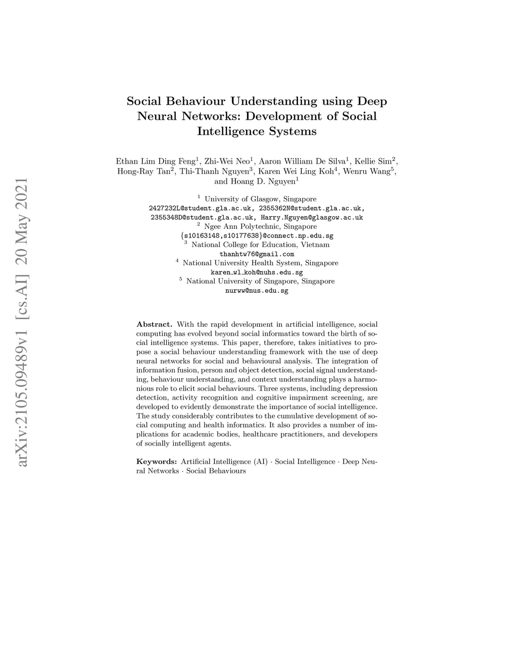 With the rapid development in artificial intelligence, social computing has evolved beyond social informatics toward the birth of social intelligence systems. This paper, therefore, takes initiatives to propose a social behaviour understanding framework with the use of deep neural networks for social and behavioural analysis. The integration of information fusion, person and object detection, social signal understanding, behaviour understanding, and context understanding plays a harmonious role to elicit social behaviours. Three systems, including depression detection, activity recognition and cognitive impairment screening, are developed to evidently demonstrate the importance of social intelligence. The study considerably contributes to the cumulative development of social computing and health informatics. It also provides a number of implications for academic bodies, healthcare practitioners, and developers of socially intelligent agents.