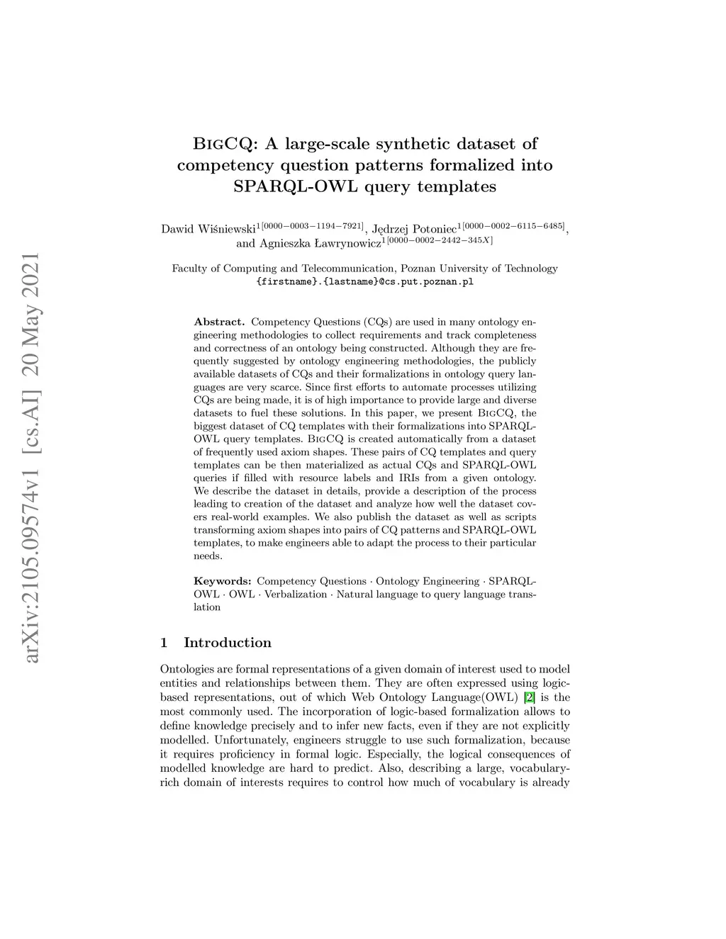 Competency Questions (CQs) are used in many ontology engineering methodologies to collect requirements and track the completeness and correctness of an ontology being constructed. Although they are frequently suggested by ontology engineering methodologies, the publicly available datasets of CQs and their formalizations in ontology query languages are very scarce. Since first efforts to automate processes utilizing CQs are being made, it is of high importance to provide large and diverse datasets to fuel these solutions. In this paper, we present BigCQ, the biggest dataset of CQ templates with their formalizations into SPARQL-OWL query templates. BigCQ is created automatically from a dataset of frequently used axiom shapes. These pairs of CQ templates and query templates can be then materialized as actual CQs and SPARQL-OWL queries if filled with resource labels and IRIs from a given ontology. We describe the dataset in detail, provide a description of the process leading to the creation of the dataset and analyze how well the dataset covers real-world examples. We also publish the dataset as well as scripts transforming axiom shapes into pairs of CQ patterns and SPARQL-OWL templates, to make engineers able to adapt the process to their particular needs.