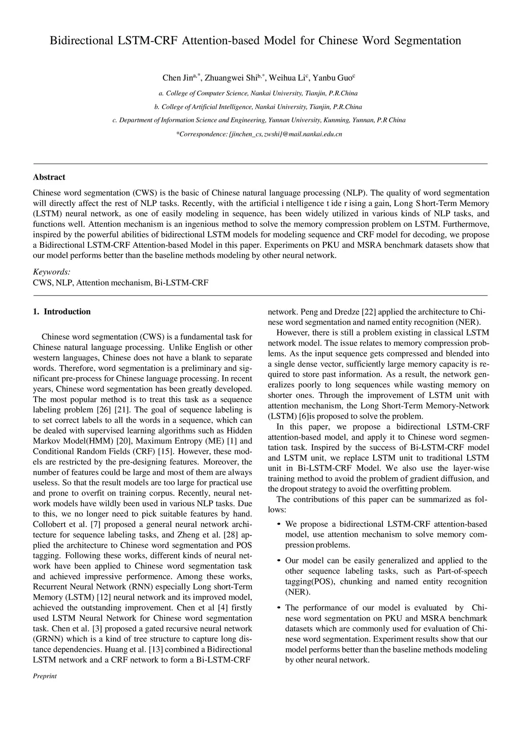 Bidirectional LSTM-CRF Attention-based Model for Chinese Word