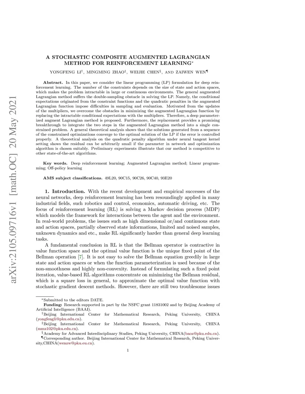 A Stochastic Composite Augmented Lagrangian Method For Reinforcement